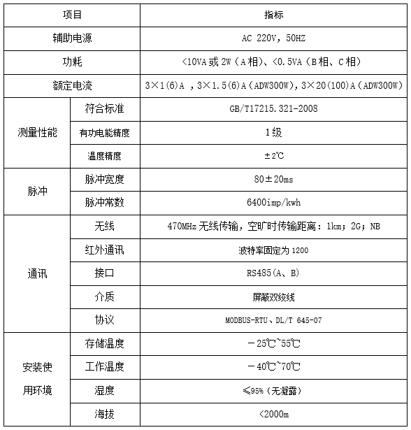 技術要求:額定電流3×1.5(6)A(ADW300W),3×20(100)A(ADW300W)
