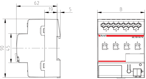 | 產品型號 | 模塊寬度(B)mm | 回路數 |