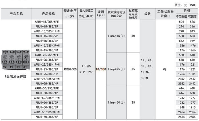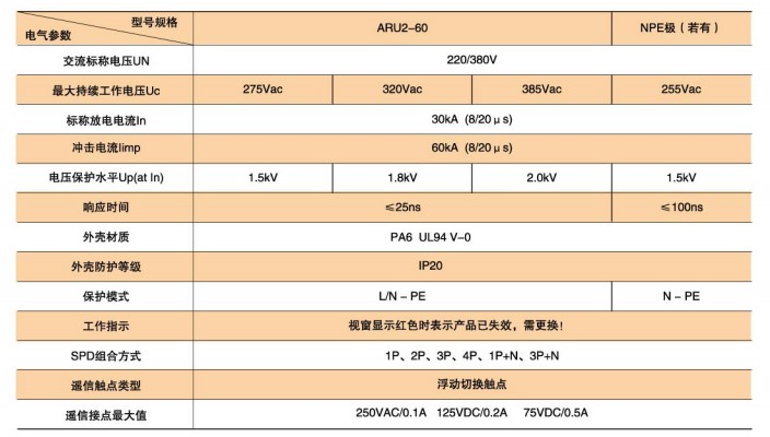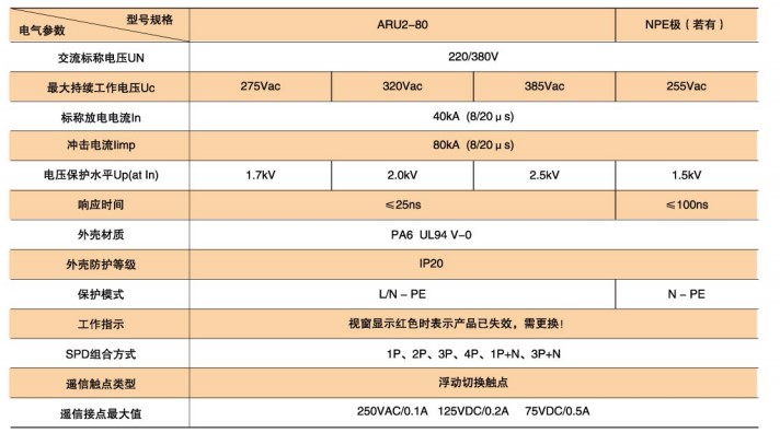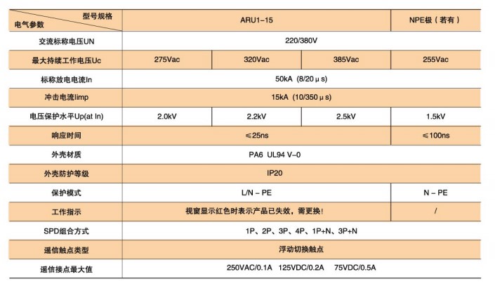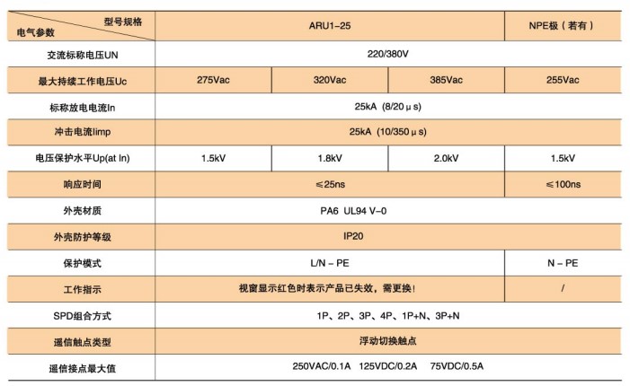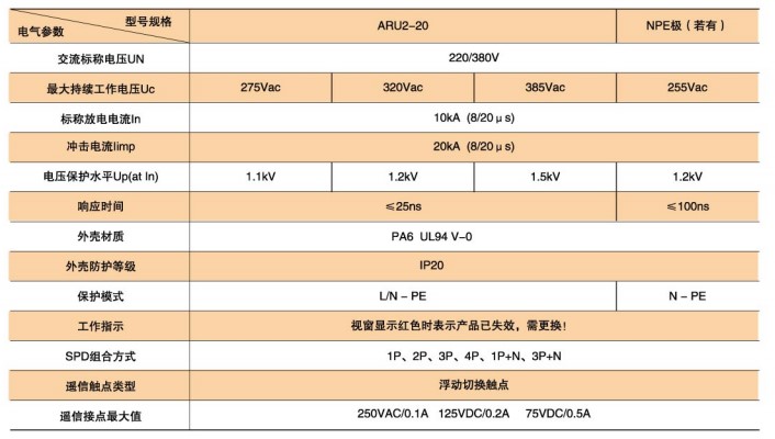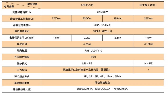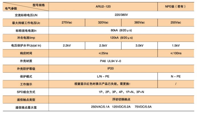 查看詳細(xì)信息 >ARU1-25型SPD技術(shù)參數(shù)