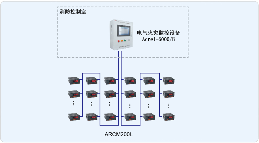 安科瑞于2014年9月承接了該項目電氣火災(zāi)監(jiān)控系統(tǒng),整套系統(tǒng)由壁掛式電氣火災(zāi)監(jiān)控裝置安科瑞Acrel-6000/B、ARCM200L剩余電流式火災(zāi)探測器組成。現(xiàn)場低壓配電柜內(nèi)探測器采用2條485總線接至消控中心的Acrel-6000/B壁掛式電氣火災(zāi)監(jiān)控系統(tǒng),當(dāng)現(xiàn)場保護(hù)線路中的被探測參數(shù)超過報警設(shè)定值時,發(fā)出報警信號、控制信號,指示報警部位并保存報警信息。