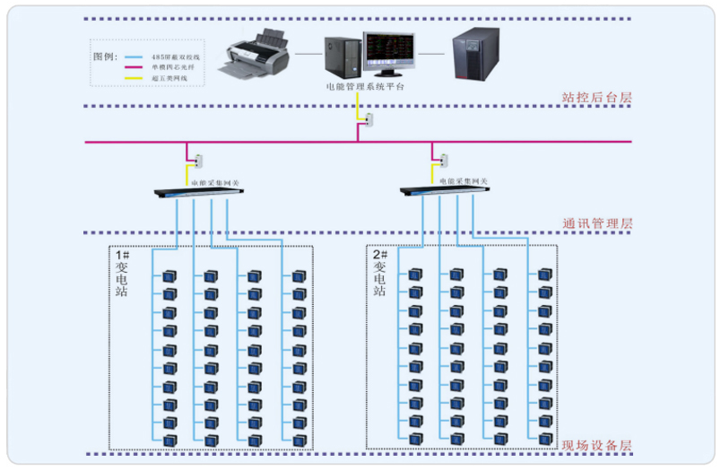 2.各個(gè)變電所內(nèi)進(jìn)出線(xiàn)回路的電能和電參量的數(shù)據(jù)采集、電能計(jì)量。