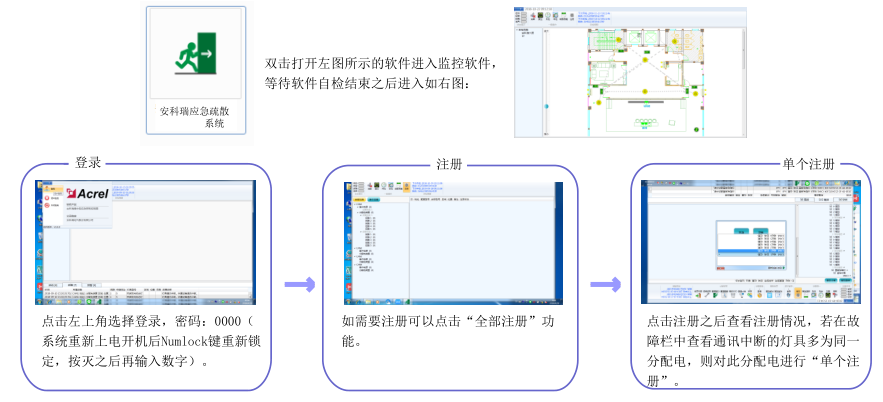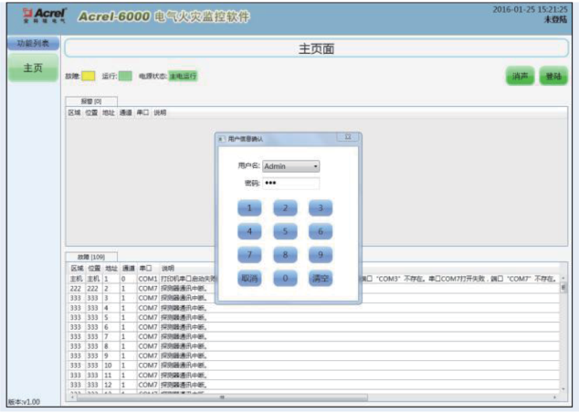 包含“登陸”、“消音”、“運行監視界面”及“系統狀態欄”四部分,可以分別通過點擊系統主界面上方的菜單欄或快速啟動欄內按鈕進入各相關功能界面。