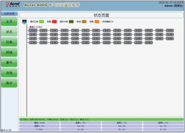 Acrel-6000電氣火災監控系統是用于接收剩余電流式電氣火災監控探測器等現場設備信號,以實現對被保護電氣線路的報警、監視、控制、管理的運行于計算機的工業級硬件/軟件系統。本系統適用于智能樓宇、高層公寓、賓館、飯店、商廈、工礦企業、國家重點消防單位以及石油化工、文教衛生、金融、電信等領域,對分散在建筑內的探測器進行遙測、遙調、遙控、遙信,方便實現監控與管理。