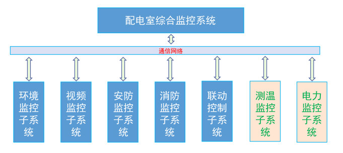 配電室綜合監控是整個電能管理系統中的一個重要環節,一般以低壓網中的配電室環境溫濕度、配電開關狀態、漏水/水浸、煙霧及配電室的防盜為監測對象,對配電房重要設備運行狀態的多種參數和狀態進行本地聯動控制、遠程集中監控、手機短信報警。配電室的全信息采集和監控對配電室自動化運行管理、檢修維護、防災預警、安全防護、電力需求管理等應用具有重大意義。